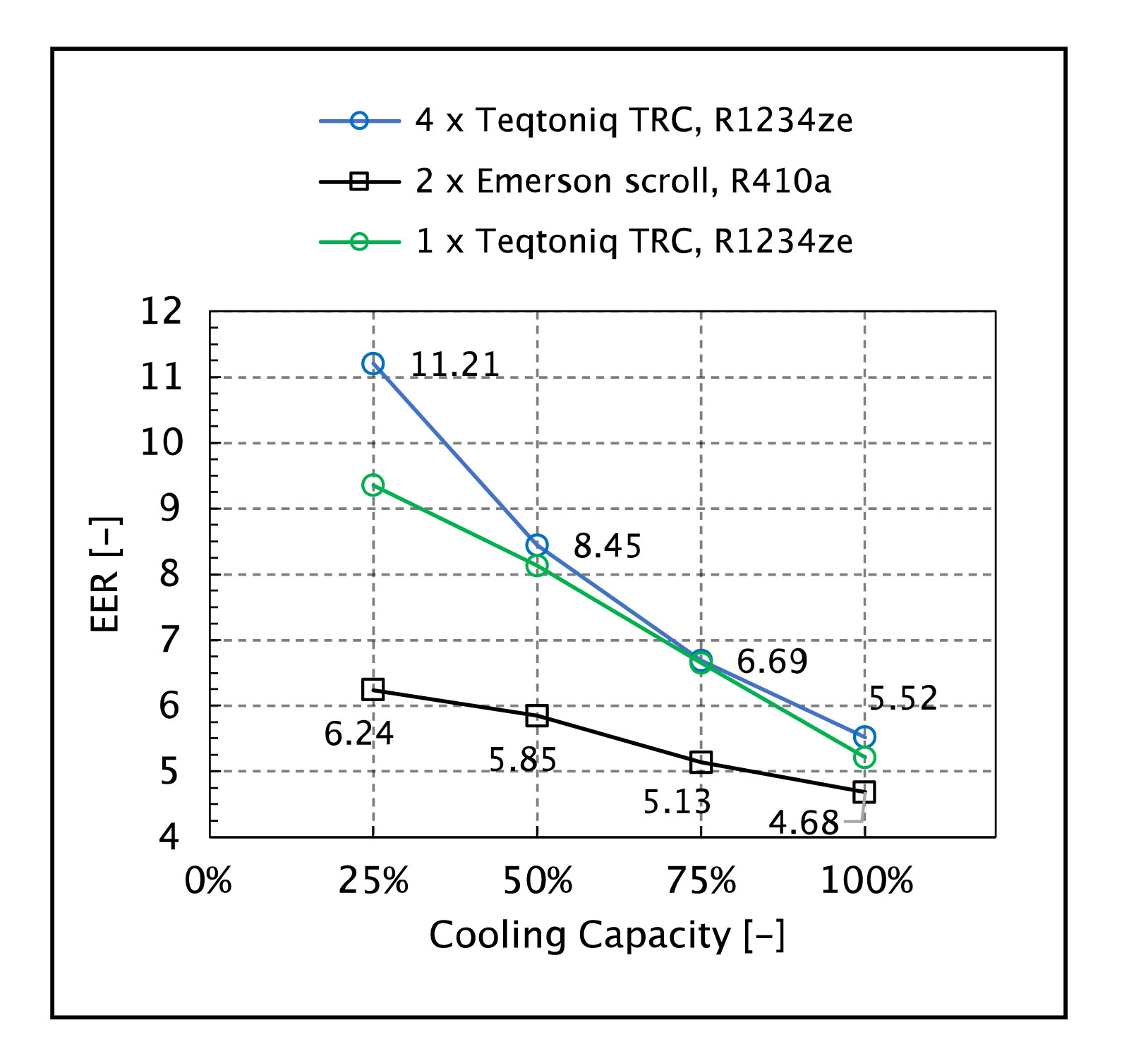 The Teqtoniq TRC150 compressor has a wide operating map, allowing chillers to be used in a wide range of comfort cooling, heating and process applications.